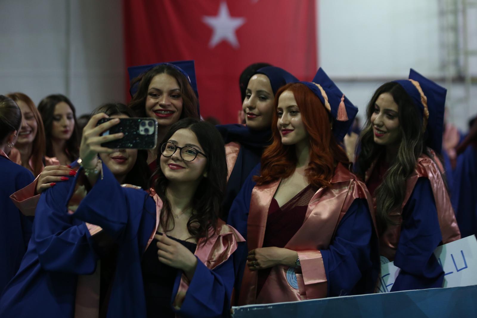 Our graduation ceremony, which was held with great enthusiasm, ended with our graduates throwing their caps into the air. This beautiful moment when hundreds of caps floated in the air was immortalized with photographs and video recordings. We congratulate our dear graduates who have successfully completed their departments and programs and will begin their professional lives, and wish them everything they want.