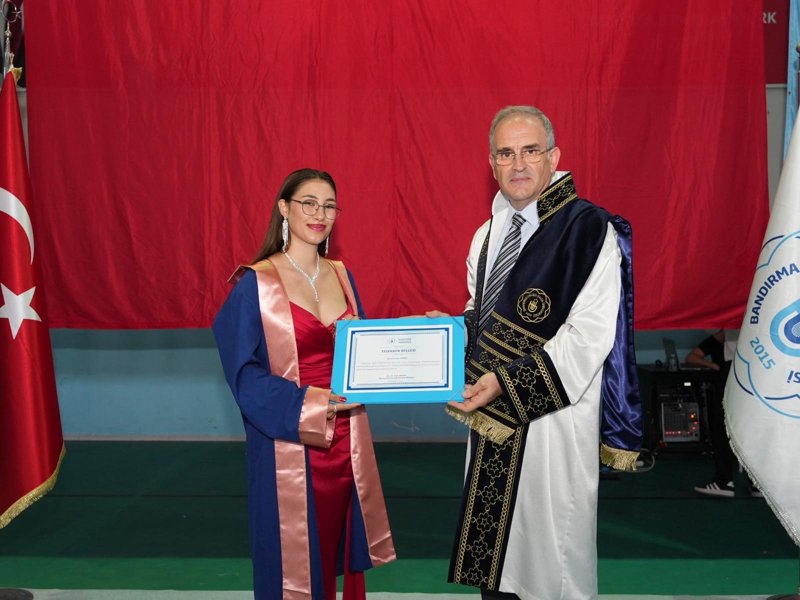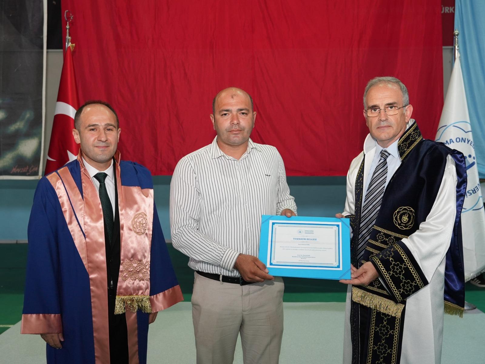 The program then moved on to the presentation ceremony of certificates of achievement and awards to our students who were ranked. Our students who graduated from our university with honors received their certificates of achievement and awards from our Rector Prof. Dr. İsmail Boz, Vice Rector Prof. Dr. Mehmet Emin Erçakar, Secretary General Cihangir Boz and protocol members. After the certificates of achievement and awards were presented, our Vocational School Director Assoc. Prof. Dr. Ufuk Bingöl and our academic staff presented our students with graduation certificates.