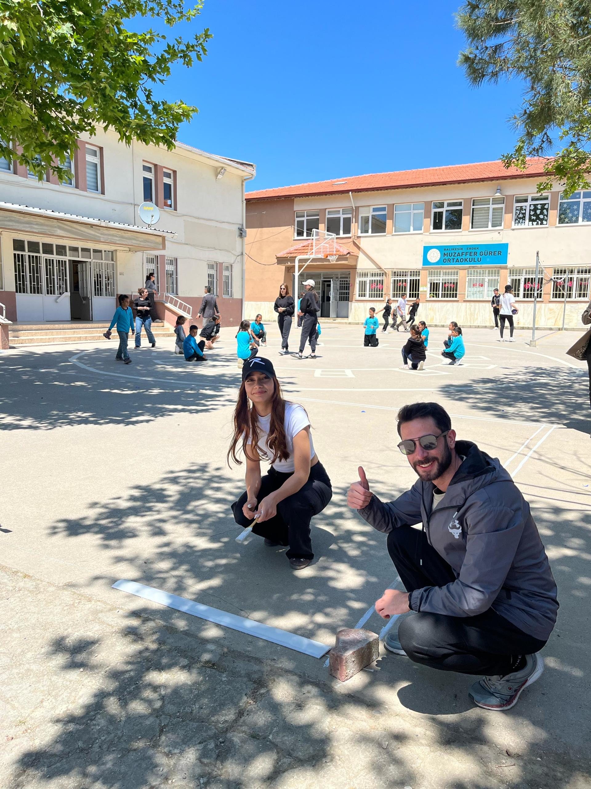 Our faculty's Department of Physical Education and Sports Teaching and Erdek District National Education Directorate's collaboration with the "There is Life in the Garden" project continues at Istiklal Primary School. 4th grade students of the Department of Physical Education and Sports Teaching drew many traditional children's games such as hopscotch, handkerchief grabber, corner grabber, butter seller and honey seller in the Istiklal Primary School garden and played the games with the children. The teachers of the future touched the little hearts that will build the future. With this meaningful project, we aimed to both keep our cultural heritage alive and increase the physical activity levels of children. Our project will continue to be carried out every week in 3 different schools in the region.