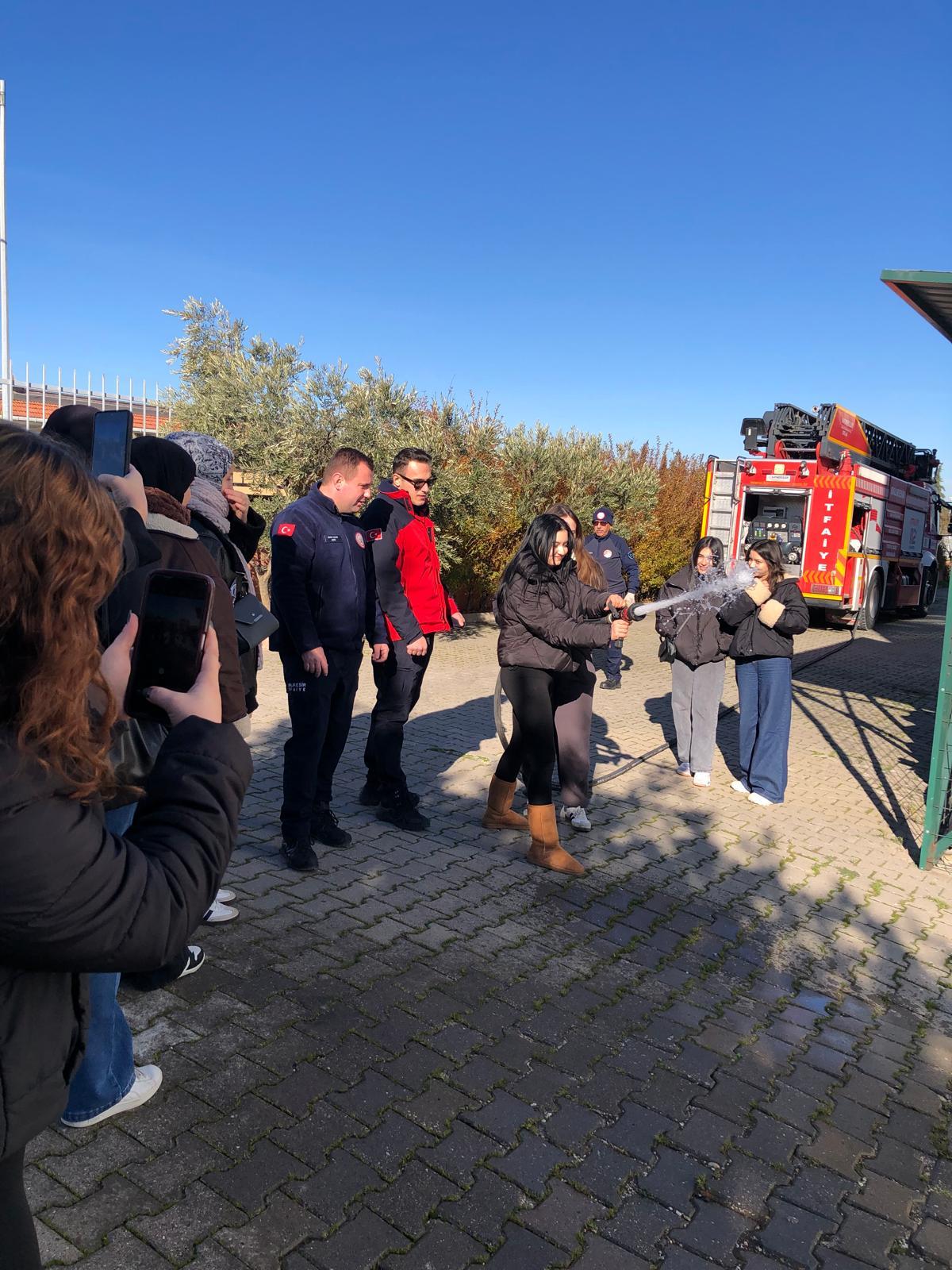 Teorik bilgilendirmenin ardından uygulamalı yangın tatbikatı yapılmış, öğrenciler yangın söndürme ekipmanlarını bizzat kullanma fırsatı bulmuştur. Gerçekleştirilen tatbikat sırasında çekilen fotoğraflarla etkinlik kayıt altına alınmıştır.